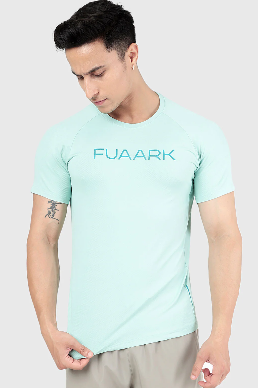 - Subtle Fuaark Branding: The t-shirt features clean, prominent FUAARK branding across the chest, reflecting quality and commitment to athletic excellence. This subtle detail elevates the shirt’s aesthetic without overpowering its sleek design.