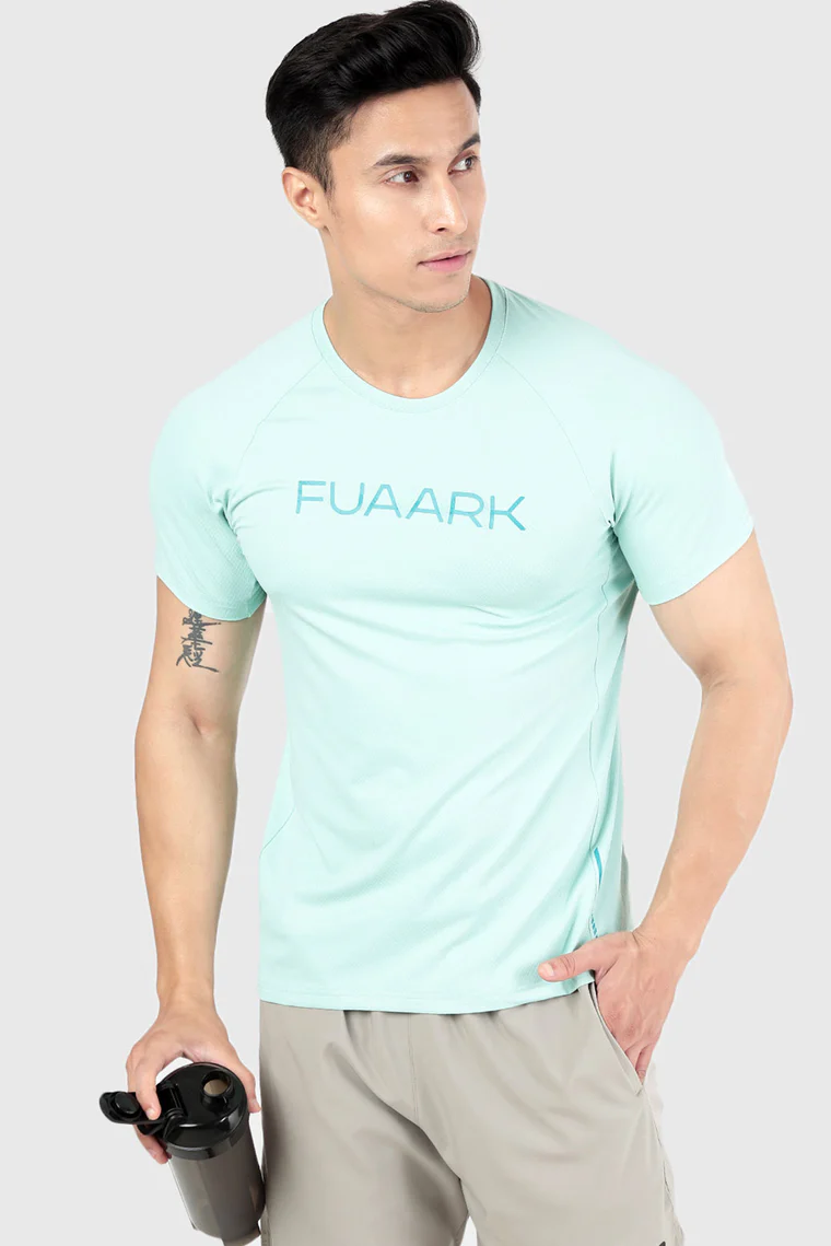 Elevate your workout gear with the Fuaark Aura Textured T-shirt in Sea Green. Experience the perfect synergy of comfort, style, and performance. Add this essential men’s fitness t-shirt to your collection today and feel the Aura of performance!